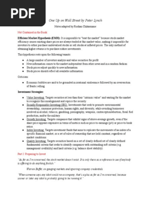 One Up On Wall Street PDF Peter Lynch is considered one of the best investors in history and in his book One Up On Wall Street download this document in pdf he distills. One Up on Wall Street is an extremely valuable piece of writing on financial education and the stock market that should be on.